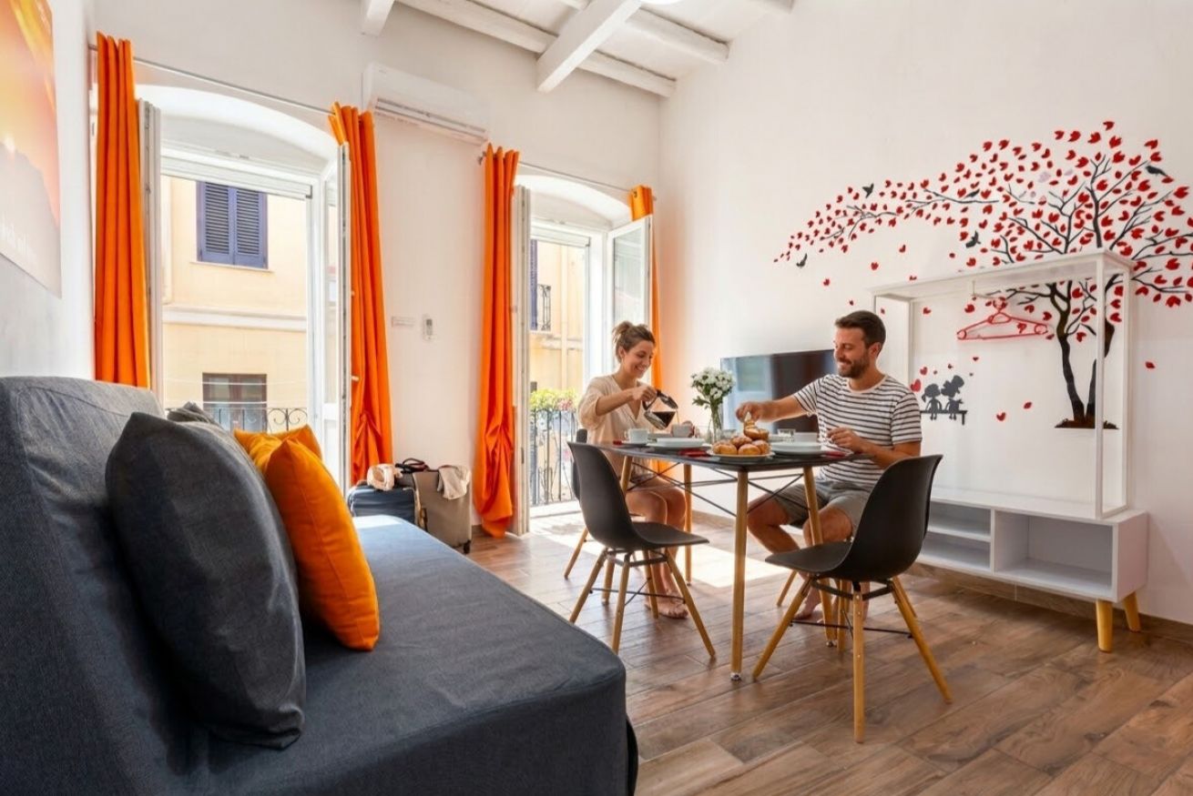 Deliziosa Family Suite nel quartiere "Marina" in Via Sardegna 96 . Solo pernottamento senza colazione. Ideale sia per una coppia che per una famiglia di 3 o 4 persone. Si compone di camera matrimoniale, bagno e soggiorno con cucina e divano letto. Dista circa 15 minuti a piedi dalle camere del B&B A View on Cagliari. Si trova al primo piano di una palazzina storica di due piani. Ha una superficie di 50mq ed è dotato di ogni genere di comfort, come Smart TV, climatizzazione, WIFI, reggi valigie, zanzariere, lavatrice, asciugatrice e numerose prese elettriche.